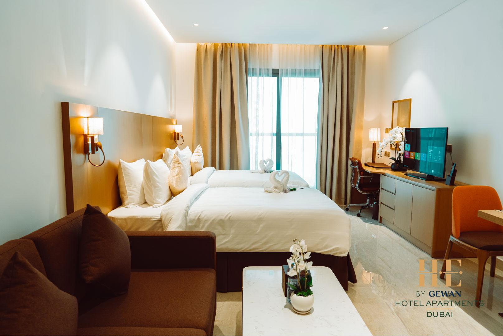 Indulge in spacious comfort during your bustling and thrilling Dubai trip with our Two Bedroom apartment. The Deluxe Two-Bedroom unit provides an expansive living area, fully equipped kitchen, high-speed internet access, and a choice of king-size or twin bedrooms. We’ve thoughtfully included a selection of premium toiletry amenities to ensure that your comfort needs and expectations are not just met, but exceeded. This is the ideal space for you to relax and unwind during your visit to Dubai.